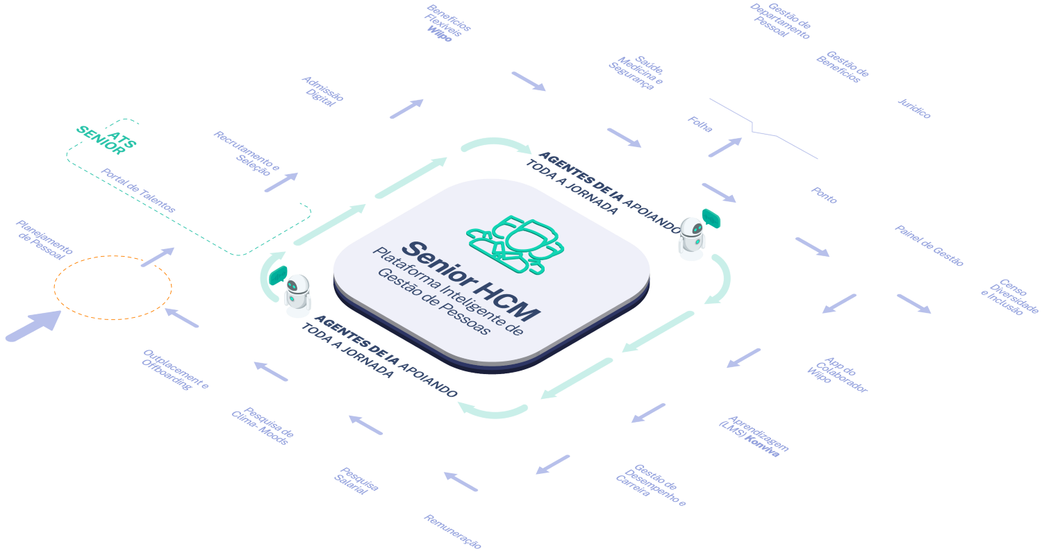 Gestão integrada para colaborador, RH e gestor, reunindo em um único ambiente as principais rotinas de férias e contratos, além de feedbacks, perfis profissionais e pessoais, avaliações de experiência e analytics — tudo para apoiar decisões e otimizar a gestão no dia a dia.